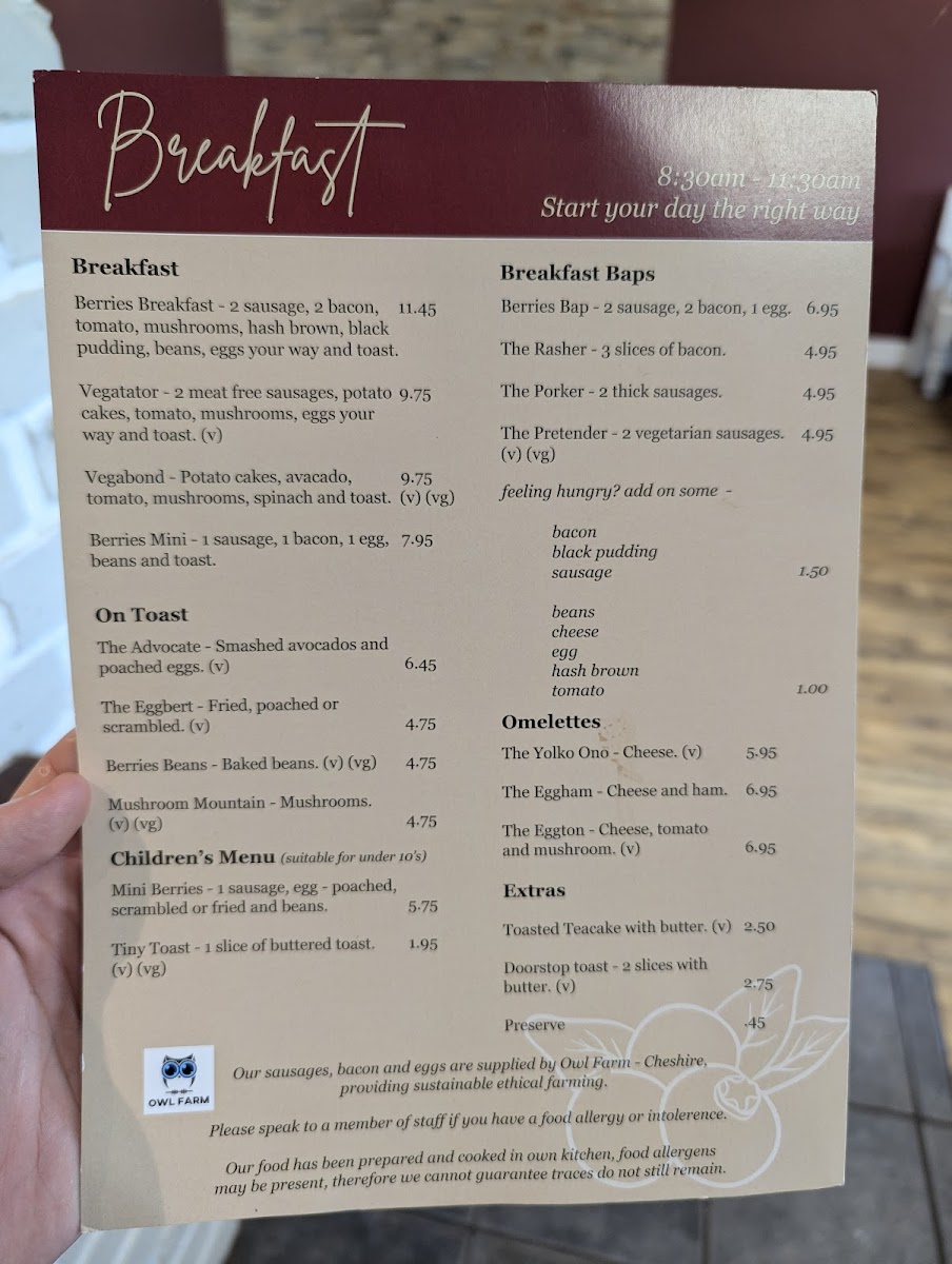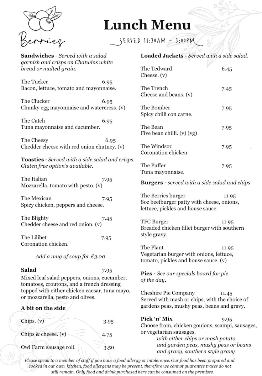 Whether you’re looking for a hearty breakfast to start your day or a relaxing lunch while enjoying the natural beauty of Cheshire’s countryside, Berries is the destination for you. With friendly staff, a charming setting, and an array of delicious menu options, it's no wonder that visitors are eager to return. Make your way to Berries for a flavor-packed experience that is sure to leave you smiling!